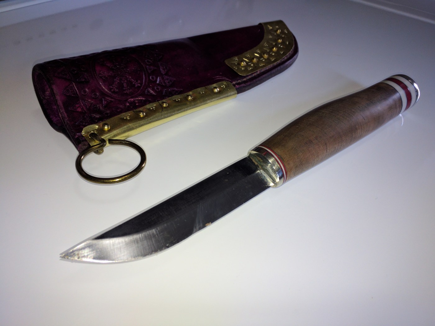 I’d been eyeing this piece of wood for something cool for a while, and decided to use a little piece on this knife. It ended up being lovely.