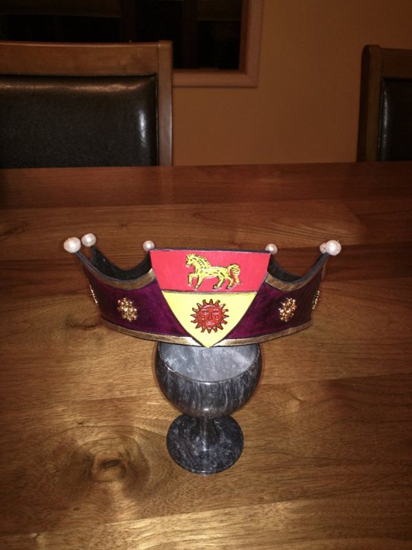 As I’ve written about before, I (perhaps foolishly) offered to make new leather coronets for the worthies of my shire – not knowing there are a dozen of them! Having already made one for our Seneschal, Baroness Mathilde, I next offered to do one for Baron Master Daniel del Cavallo OL. Much of his reenactment gear was stored at his parent’s house, and they recently had a house fire. No one was hurt, but lots of property was destroyed or damaged, including Danny’s leather coronet, so I made him next on my list.